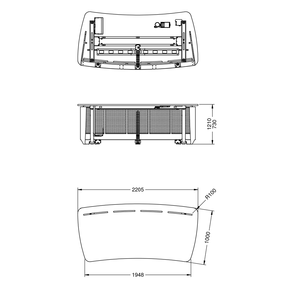 Pedestales motorizados con alzamiento desde 73cm hasta 121cm. Recorrido de alzamiento mediante tornillo sin fin auto lubricante.