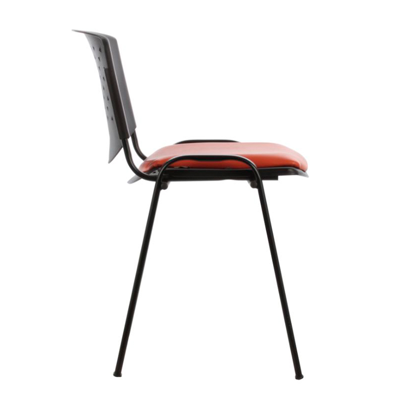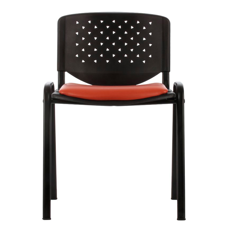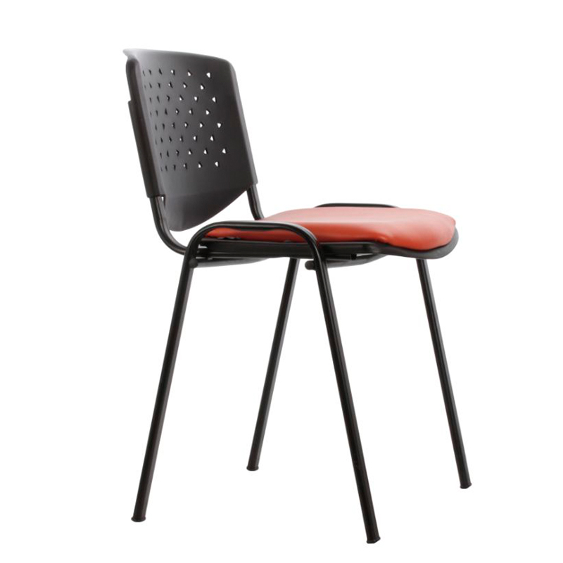 Silla de visita de estructura 4 patas negra o gris. Respaldo con perforaciones en polipropileno, Asiento tapizado color a elección.